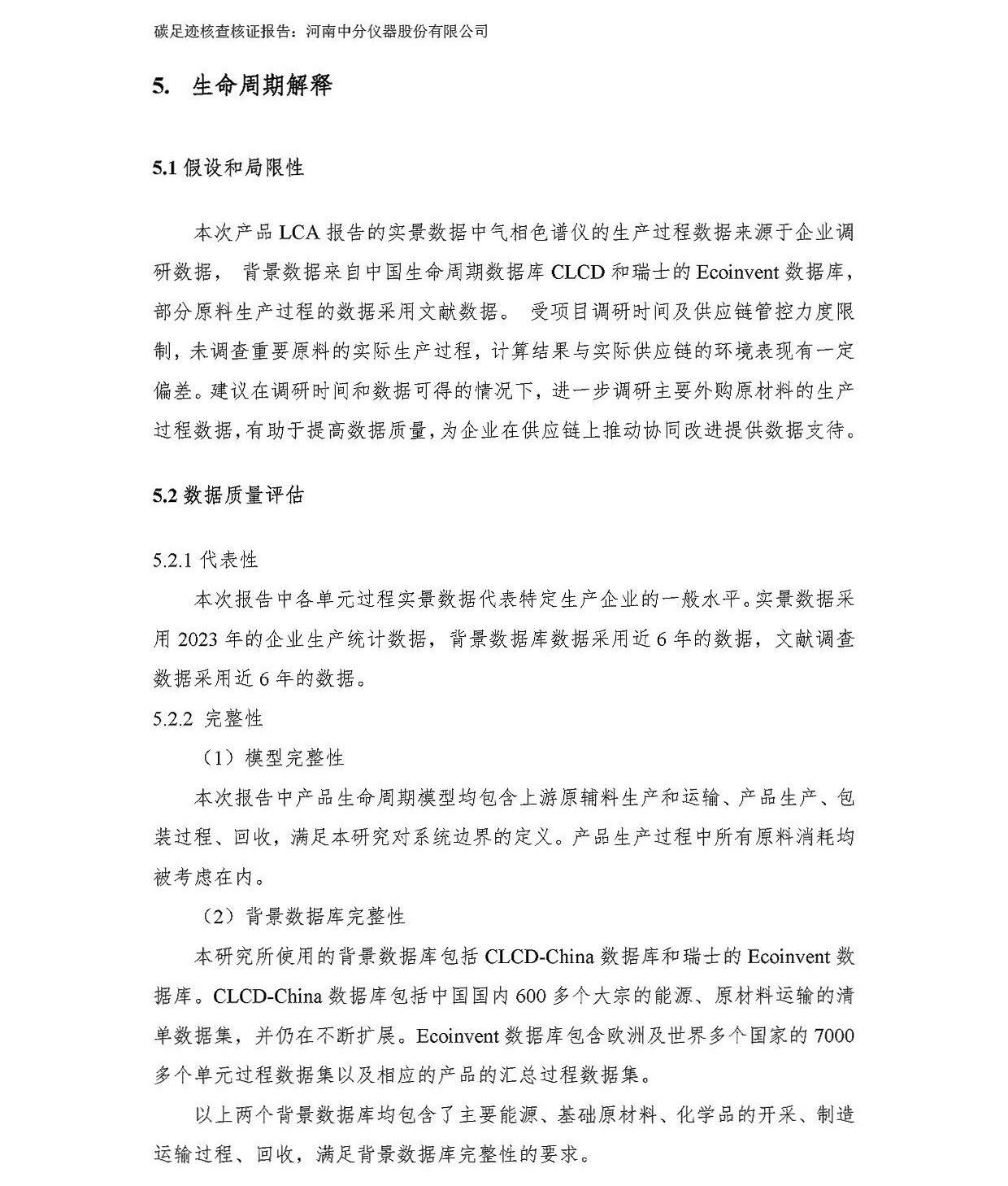 河南中分儀器股份有限公司2023年產品碳足跡核查報告