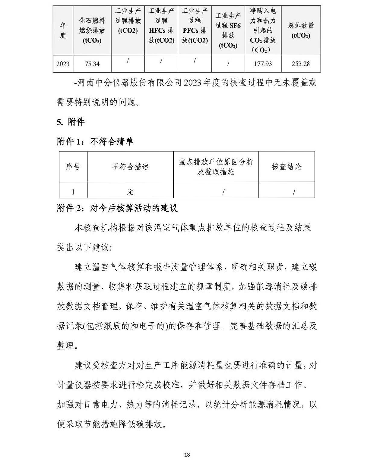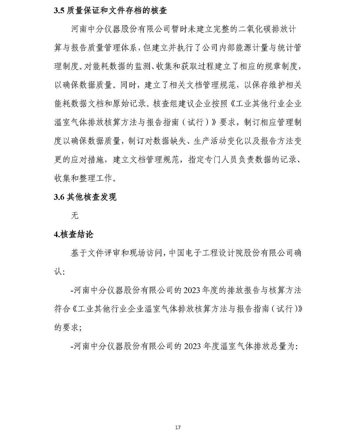 河南中分儀器股份有限公司2023年溫室氣體排放核查報告