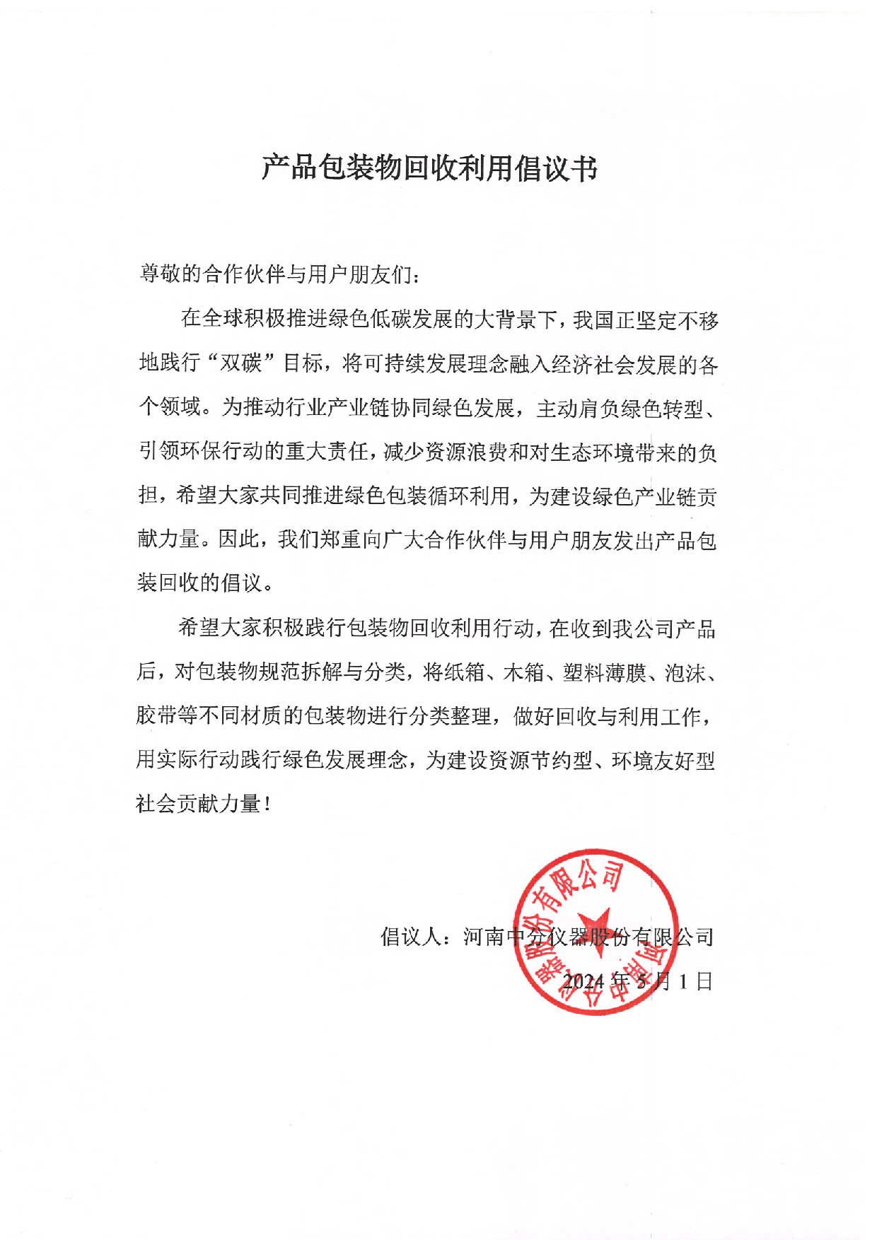 產品包裝物回收利用倡議書